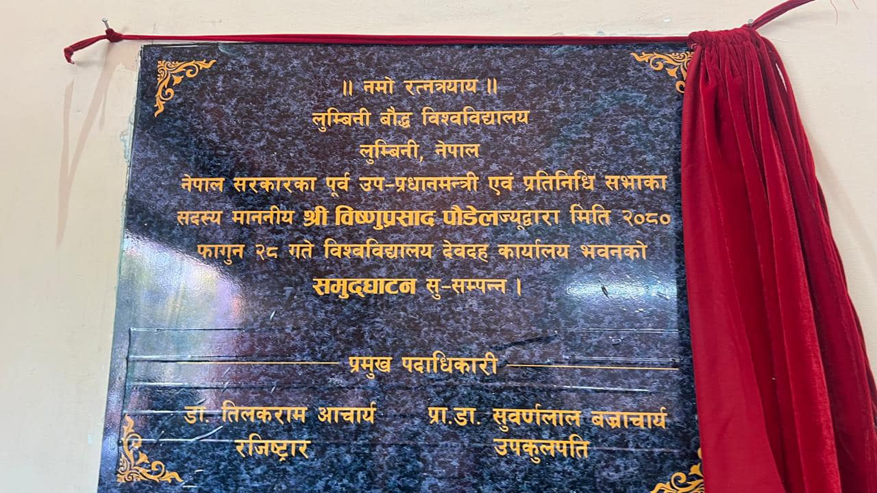आज देवदह- ८, रूपन्देहीमा लुम्बिनी बौद्ध विश्वविद्यालयको शैक्षिक एवम् प्रशासनिक भवनको समुद्घाटन भएको छ ।